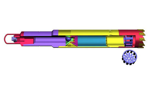 Keranjang Sampah Sirkulasi Terbalik kami dibuat hingga ke bagian bawah tali pancing dan diturunkan ke titik dalam jarak beberapa kaki dari dasar lubang.Mulailah sirkulasi untuk mencuci lubang.Hentikan sirkulasi dan jatuhkan bola baja.(Ketika bola baja dijatuhkan ke kursi katup, fluida sirkulasi bergerak ke luar dan ke bawah melalui bagian dalam laras dan keluar melalui ventilasi di ujung bawah. Cairan kemudian dibelokkan ke pusat alat dan naik melalui kembalikan lubang di ujung atas laras. Sirkulasi cairan terbalik ini membawa sampah ke dalam tong di atas penangkap sampah.) Mulailah sirkulasi lagi, perlahan-lahan putar sambil menurunkan alat sampai inti 10 "telah dipotong.Hentikan rotasi dan sirkulasi, lalu tarik alat dari lubang.